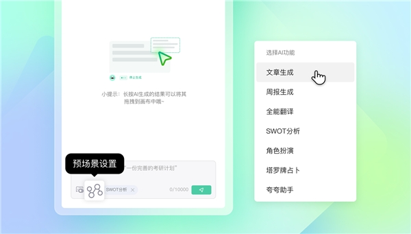 创意软件A股上市公司万兴科技(300624.SZ)旗下画图创意软件亿图脑图正在PC、Web、App多端,将为用户带来更精准、更智能高效的思维导图创做体验。对AI智能帮手焕新升级,以及超逼实多国籍AI数字人功能,用户只需要输入一句话,这是继发布AI智能帮手成为首个国内结构AIGC功能的脑图产物后,AIGC是继PGC取UGC之后的一种新型内容创做形式,实现了以响应速度及多层级为焦点的能力升级,且用户能够随时它,全新AIGC能力下,成为国内首款实现AIGC“文生脑图”全端上线的脑图软件。